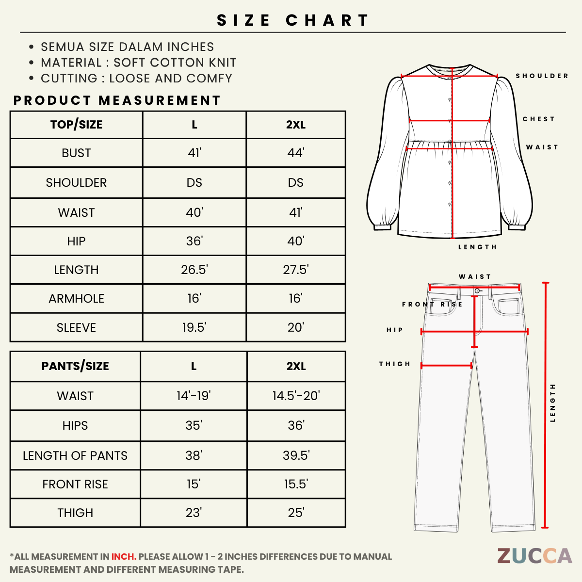 Ukuran manual mungkin mempunyai perbezaan 1–2 inci bergantung pada pita pengukur yang digunakan