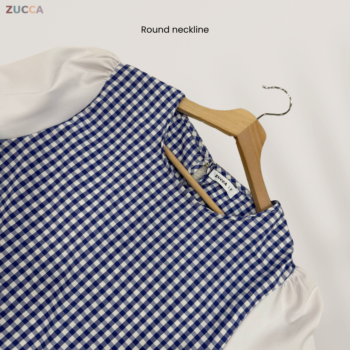 ZUCCA SYIKIN GINGHAM CHECKER PUFFED BLOUSE - DM157
