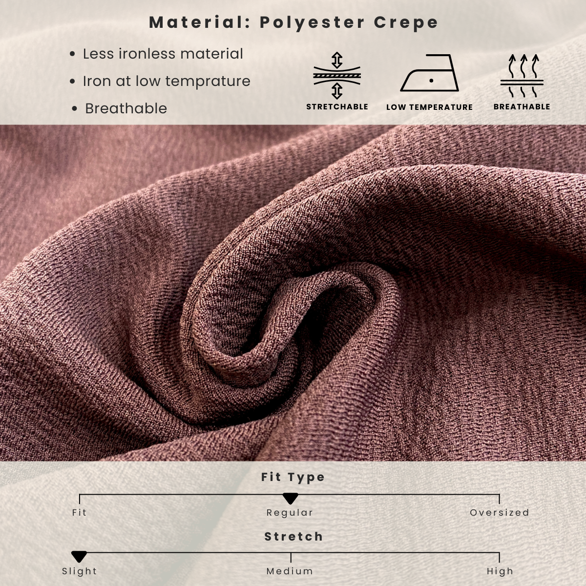 - Material: Polyester Crepe
