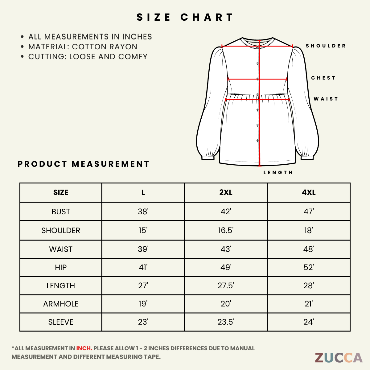 - Ukuran manual mungkin mempunyai perbezaan 1–2 inci bergantung pada pita pengukur yang digunakan