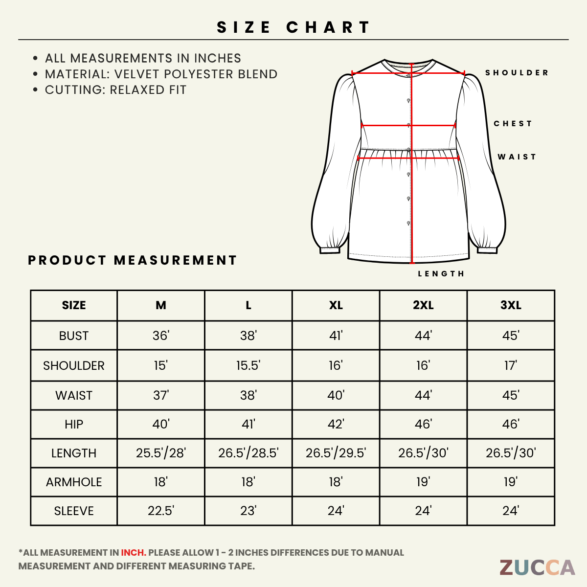• Please allow 1 - 2 inches differences due to manual measurement and different measuring tape.