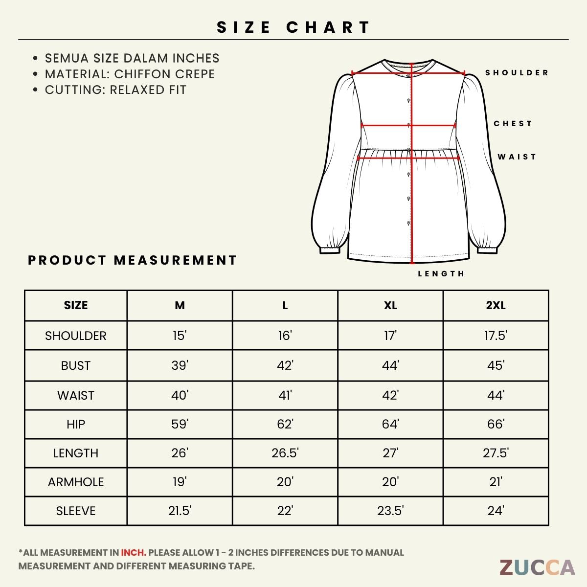 Gaya: Blouse lengan panjang dengan panel sulaman pada bahagian dada