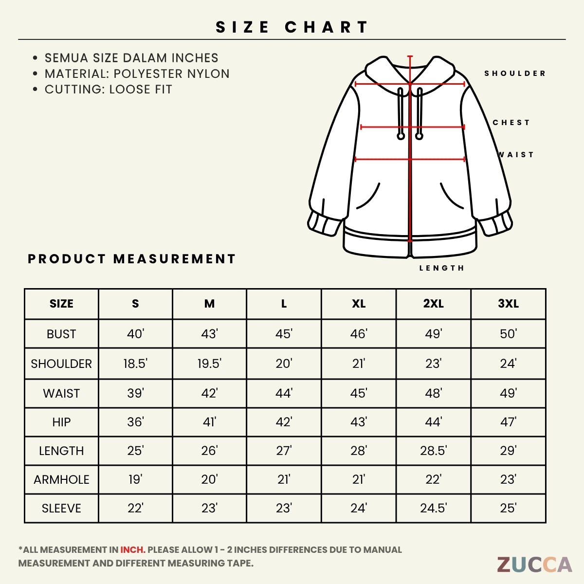 - Material: Polyester tahan lasak & ringan (windproof, breathable, water resistant)