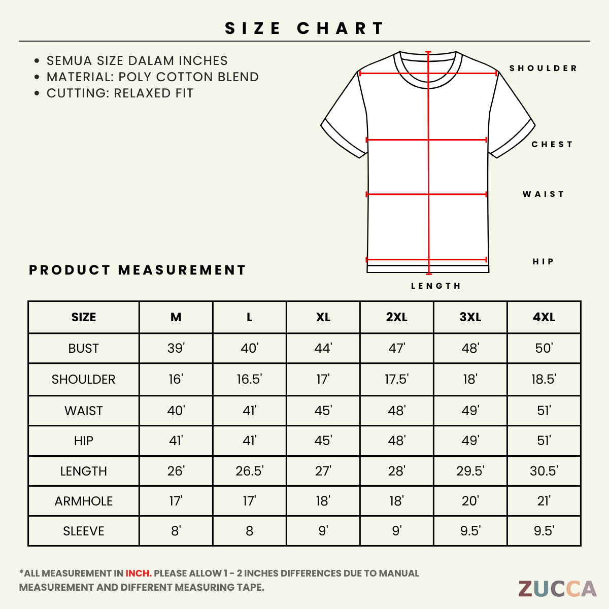 Saiz Tersedia: M, L, XL, 2XL, 3XL, 4XL
