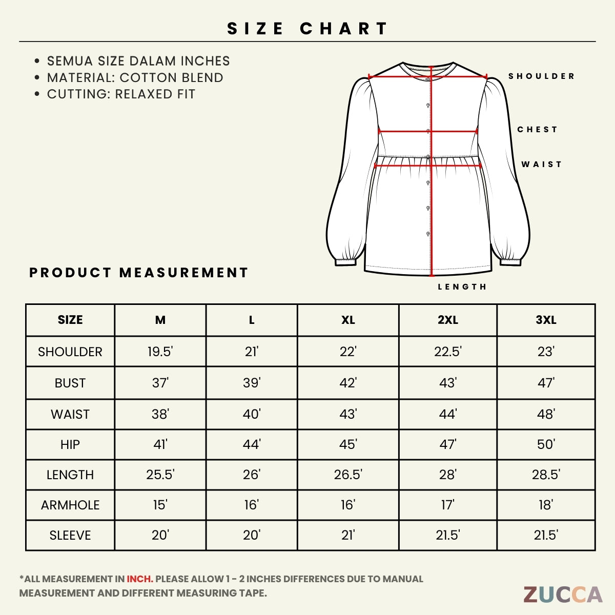 - Butiran Rekaan: Leher bulat kemas dan Lengan Panjang, Ringan & flowy, sesuai untuk modest wear