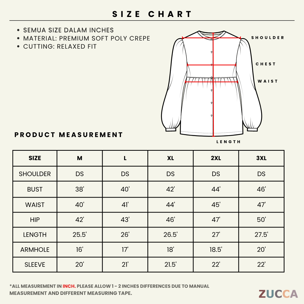 - Sila semak carta ukuran sebelum membuat pembelian.