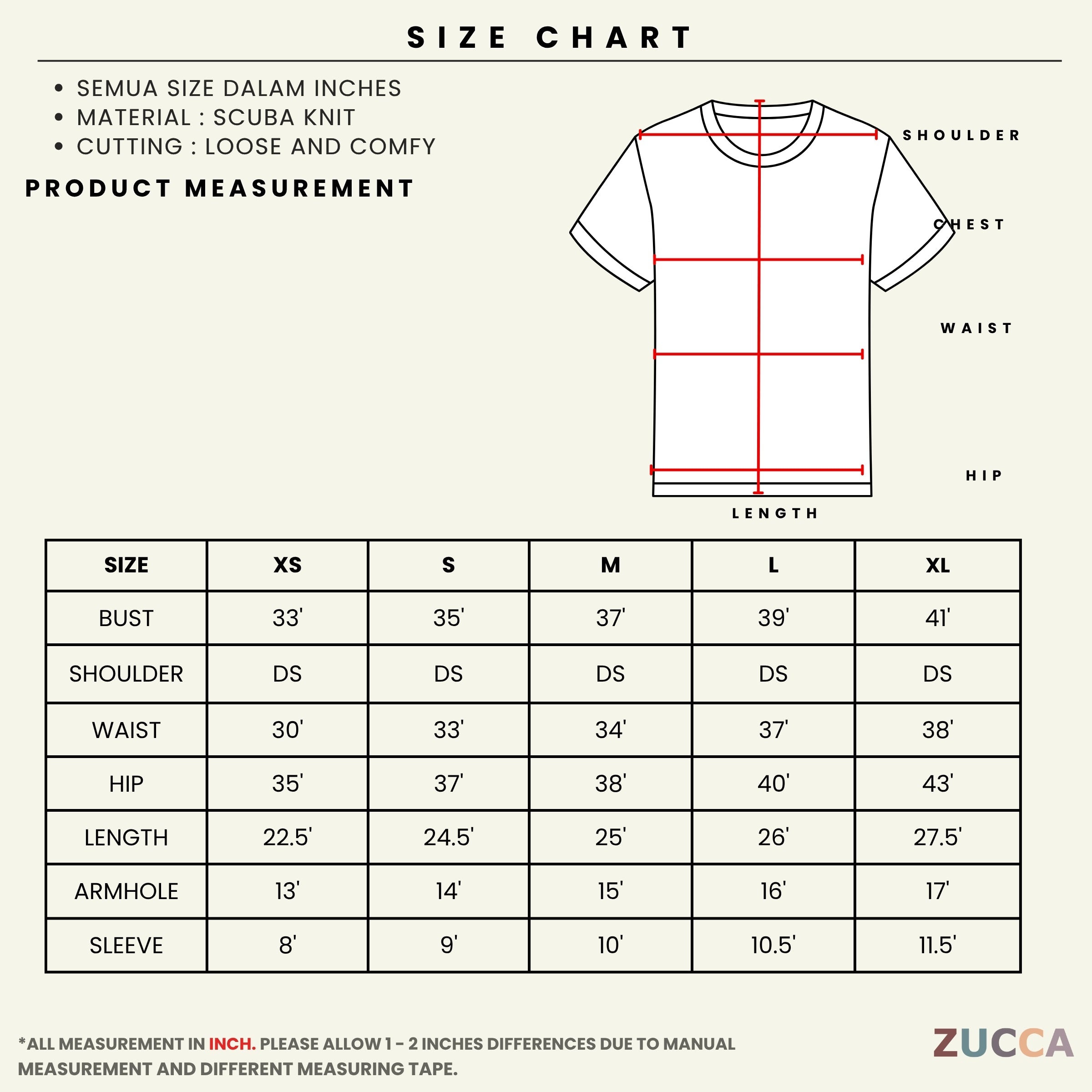Material: Scuba Knit — kain tebal sederhana, licin, anjal dan tidak mudah renyuk. Memberi rasa sejuk serta cepat kering.
